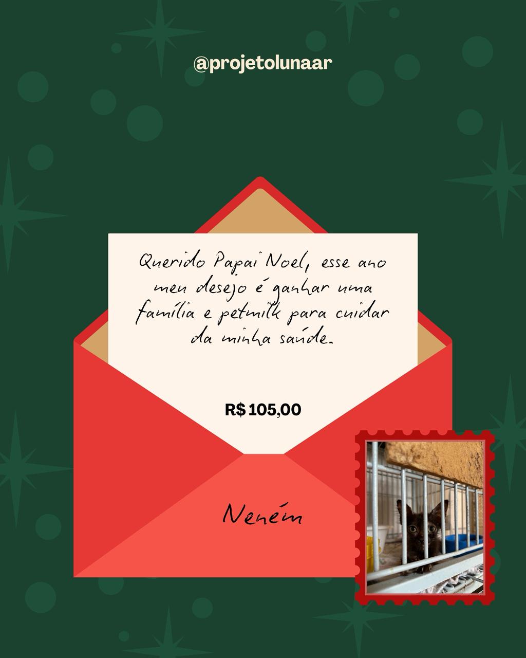 Entre os participantes estão gatinhos e cachorros como Pãozinho, Vini Júnior, Rainha e Bolt, cada um com um pedido diferente — alguns sonham com uma família, outros precisam de apoio financeiro para tratamentos e prevenção de doenças. Os valores das cartinhas variam, permitindo que mais pessoas possam contribuir de acordo com suas possibilidades.